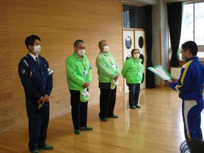 「安全パトロール隊」の方との対面式が行われました。皆さんのおかげで、毎日安心して登下校することができています。今年もよろしくお願いします。