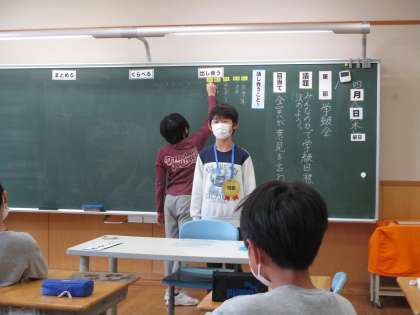 学級会は子供たちが進めます。司会の人がみんなの意見をまとめて上手に学級会ができました。