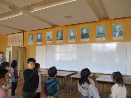 4月12日(月) 1年生 ブラミドリ2 公開日 2021/04/12 更新日 2021/04/12 1年生の部屋 続いて音楽室に行きました。 壁に貼ってある絵は誰でしょう。 たくさんの楽器を見て、早く使ってみたくなりました。