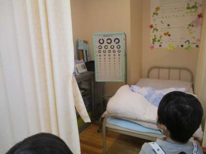 保健室にも行きました。 椅子がベッドに変身して、びっくりしました。