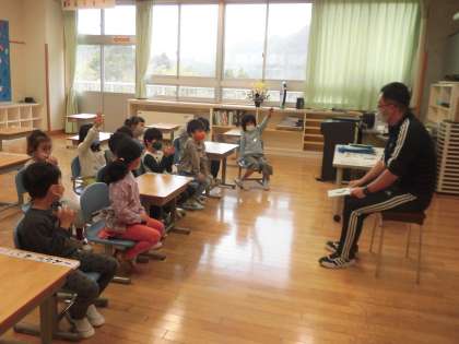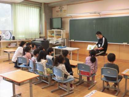 朝の時間、担任の先生に本を読んでもらっていました。