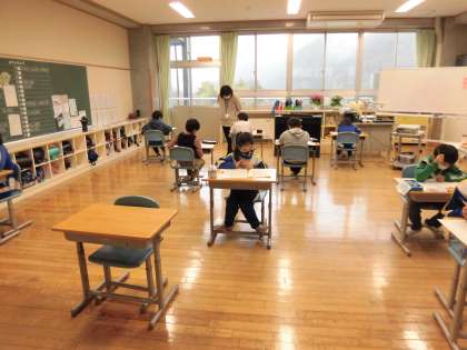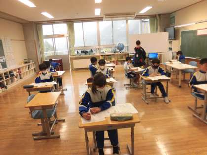 3限、4・5・6年生は、社会科の学力調査をしています。