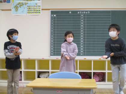 今日は、獅子舞について写真を使って話したり、実際に踊りを見せてくれたりしました。