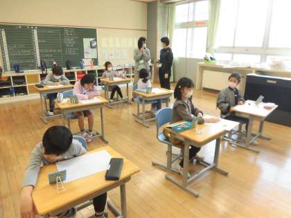 2・3年生教室では、図工で、自分の顔を描いていました。