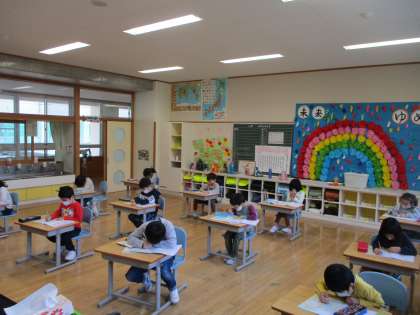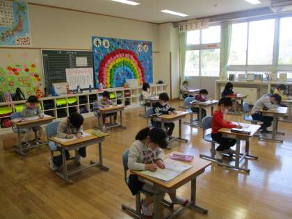 と、子供たちは平仮名をきれいに書くこつを見付けながら練習しました。