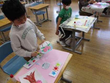 4月20日(火)2年生 もうすぐ完成 公開日 2021/04/20 更新日 2021/04/20 2年生の部屋 先週から図画工作科の学習で、春の花を心を込めてスケッチしている2年生。今日は、集めた花の絵を、まとめて1つの作品にしました。