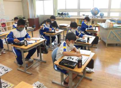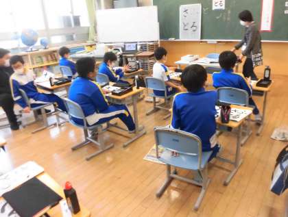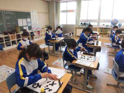 4月21日(水) 5年書写「ふるさと」 公開日 2021/04/21 更新日 2021/04/21 5年生の部屋 3限、5年生は塩苅教頭先生との書写でした。 今日は、「ふるさと」と練習していました。 点画のつながりを大切にしてかくことを教わっていました。