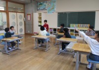 朝の会の時間に、2・3年生は、1年生教室を訪れ、来週行われる「入学おめでとう集会」の招待状を1年生に渡しました。