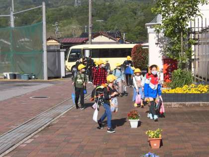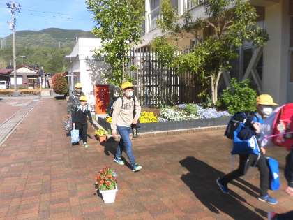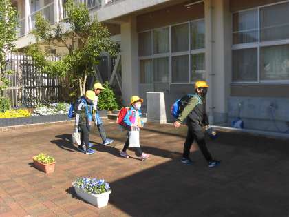 連休明けの課業日ですが、青空が広がっており、子供たちは元気よく登校してきました。