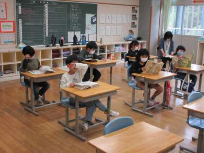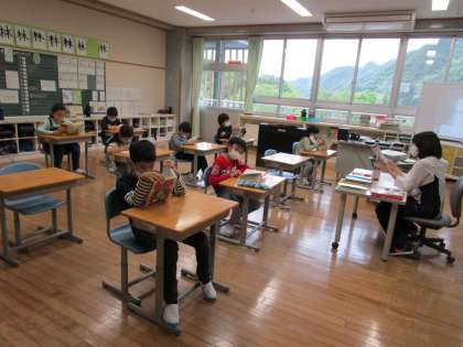 昼休みと清掃が終わった後は、全校みんなで本を読む「よむよむタイム」です。