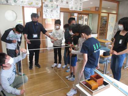 5月10日(月) 5年生 1立方メートルの大きさを体感 公開日 2021/05/10 更新日 2021/05/10 5年生の部屋 算数科では、体積の学習をしています。 今日は1立方メートルの大きさを体感しました。 この中に何人入ることができるでしょうか。 子供たちは、「結構大きいな」と感想をもちました。