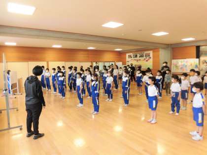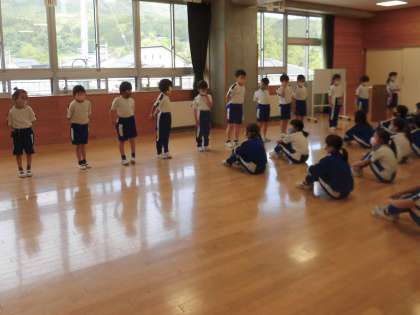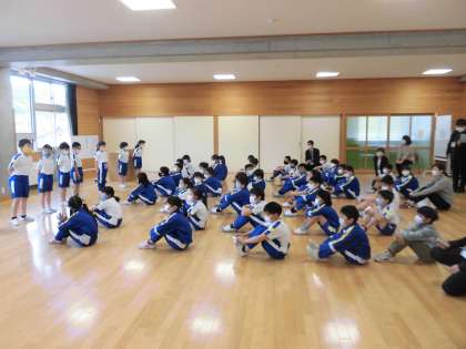 その後、1年生が先日の「入学おめでとう集会」のお礼の気持ちを込めて「うたにあわせてあいうえお」の神通碧バージョンを発表しました。
