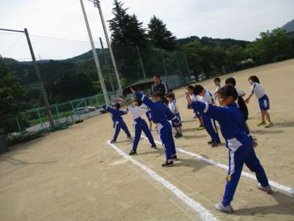2年生は記録を伸ばそうと、バックネットの高いところを目指し軸足をしっかり踏んで、思い切りソフトボールを投げました。練習の成果はいかに。