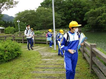 今日は、実際に天湖森へ出かけ、植物や鳥、動物等を見付けたり、鳥の声や風の音を感じたりしてきました。