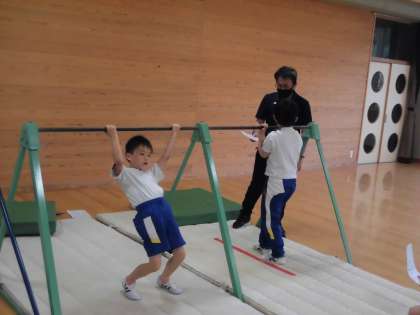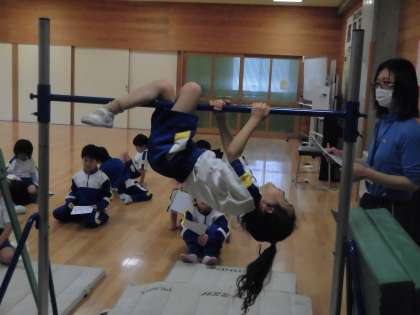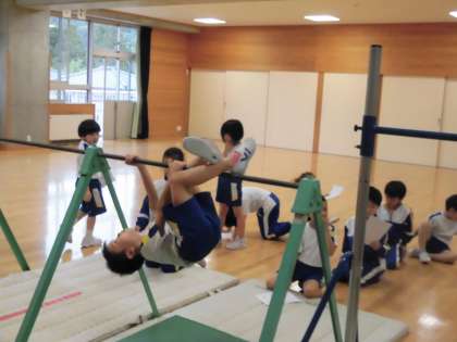1・2年生は、5限に体育で鉄棒に取り組んでいました。