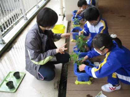 5月21日(金)2年生 ベランダでも 公開日 2021/05/21 更新日 2021/05/21 2年生の部屋 昨日から、自分たちで育てる野菜の苗を植え始めた2年生。昨日は畑に、今日はベランダで植木鉢に、心をこめて植えました。
