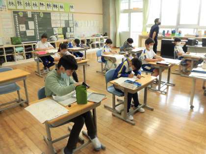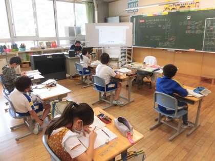 4年生は、算数であまりのある割り算の筆算とその確かめの仕方について学習していました。
