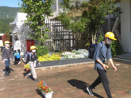 今日は、2年生が生活科の学習で地域探検に出かけます。