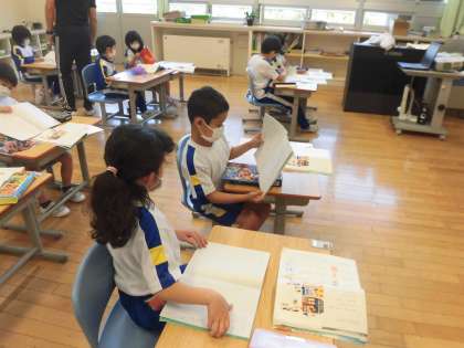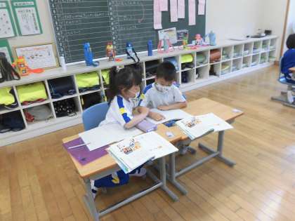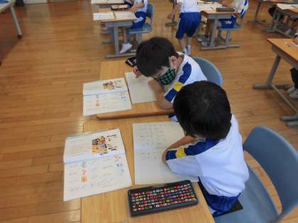 ペアになって、ノートに書いた言葉を確かめ合っていました。