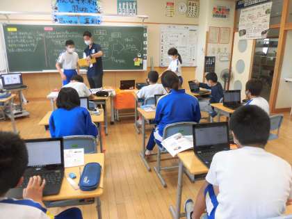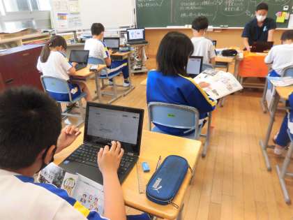 社会科の「わたしたちの生活と政治」の学習はまとめに入っています。クロームブックのスプレッドシートを使って、子供たちがそれぞれつくった問題を解き合っています。