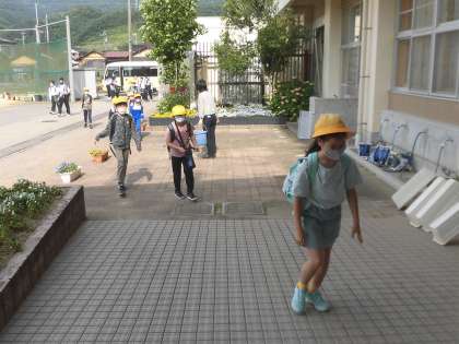 今日、午前中は、グリーンアドベンチャーで全校で天湖森へ向かいます。