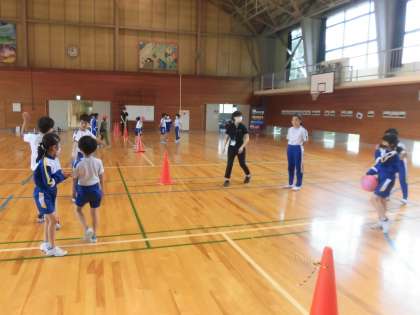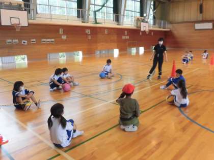 プレルボールは、ロープをはさんでボールを打ち合うドイツ生まれのゲームです。「プレル」とはドイツ語で打ちつけるという意味でその言葉通り、ボールを地面に打ちつけ、ボールをバウンドさせて味方にパスしたり、相手コートに打ち込んだりします。