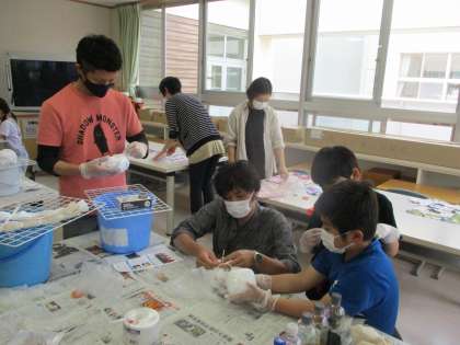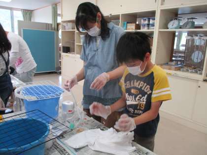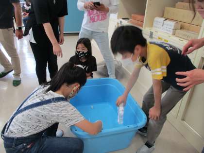 しばったり丸めたりした後は、定着液にひたして10分ほど待ちます。