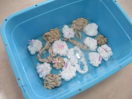 準備ができた人から、ひたしておいたTシャツやエコバックを持って行って・・・