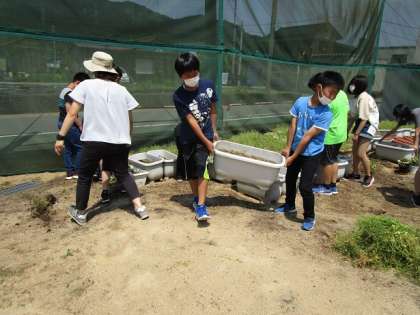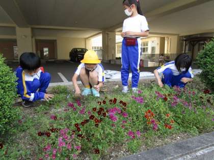 夏花苗が明日学校に届くので、全校みんなで花壇の整備を行いました。学年ごとに担当場所の花壇の花や草をきれいに抜きました。どんな夏花苗が届くのか楽しみです。