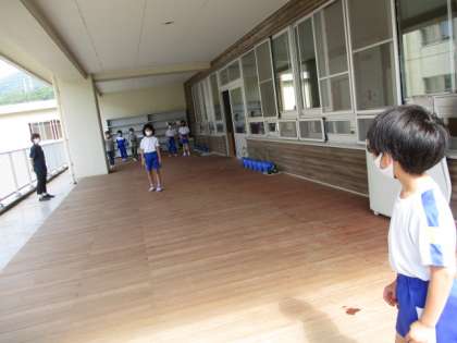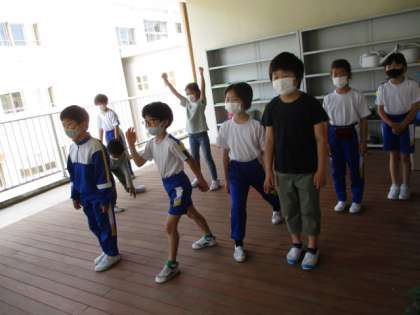 コミュニケーションの2時間に、ゲーム係の人たちが計画してくれた「だるまさんが転んだ」ゲームをしました。2・3年生は、明るくなかよく、新しい1週間をスタートさせました。