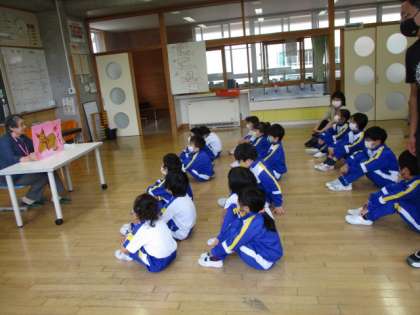 今日の読み語りは、蟹寺のお話でした。私たちの地域にはいろいろなお話があるのだなあと感じる1・2年生。また、別のお話も読んでいただけるようです。とても楽しみです。