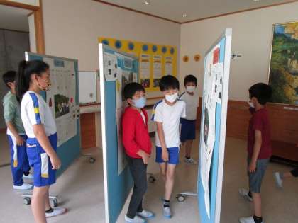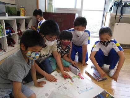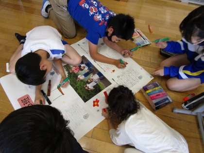6月9日(水)グリーンアドベンチャー新聞作り 公開日 2021/06/09 更新日 2021/06/09 碧っ子の姿から 先週行ったグリーンアドベンチャーの振り返りを、班ごとに新聞にまとめました。楽しかった活動時の話をしたり、見付けた植物の絵を描いたりしながら、素敵な新聞に仕上げました。