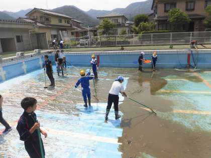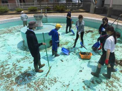 6月11日(金) 小中合同清掃ボランティア(プール清掃)1