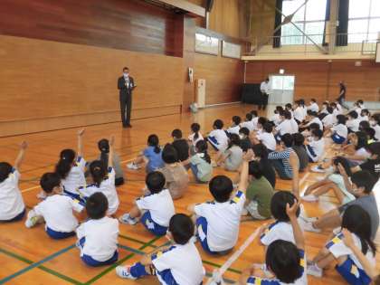 体育館へ避難した後、地区別に並びかえる練習を行いました。