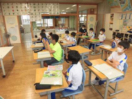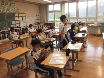 5年生は、先日行った「高齢者疑似体験」について感想を伝え合っていました。
