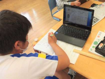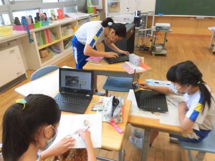 6月15日(火) 4年国語「新聞づくり」 公開日 2021/06/15 更新日 2021/06/15 4年生の部屋 4年生は、国語で新聞について学習しています。 今日は自分たちで新聞をつくるために、クロームブックを使って、インターネットで調べたり、絵を描いたりしていました。
