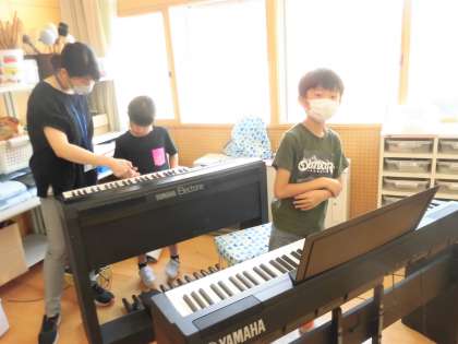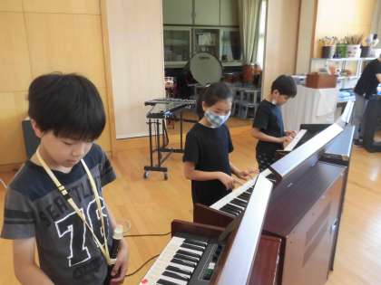 6月17日(木) 4年音楽「クラッピングファンタジー」 公開日 2021/06/17 更新日 2021/06/17 4年生の部屋 リコーダーとオルガンで演奏しています。 シャープやフラットの音が入っています。