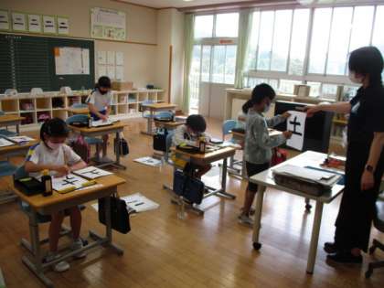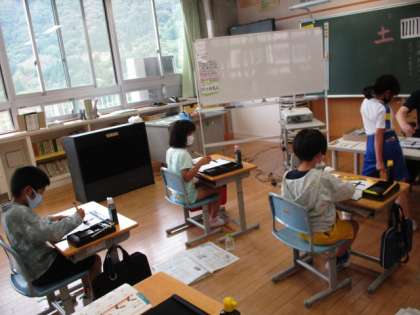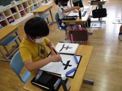 今日から毛筆で縦画に挑戦です。横画の学習のときに負けないくらいの集中で、がんばります。