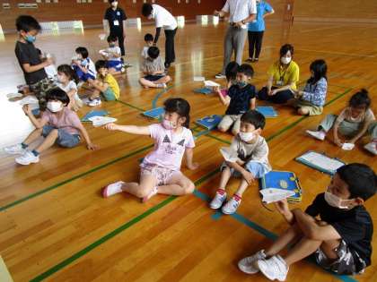 1、2年生は、飛行機作りに挑戦です。紙飛行機の作り方を教えていただき、みんなで飛ばしてみました。誰の紙飛行機がよく飛んだでしょう。
