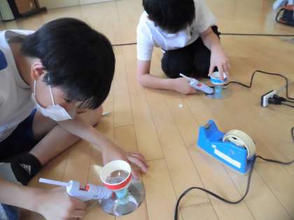 3・4年生は、風船ホーバークラフトづくりに挑戦しています。