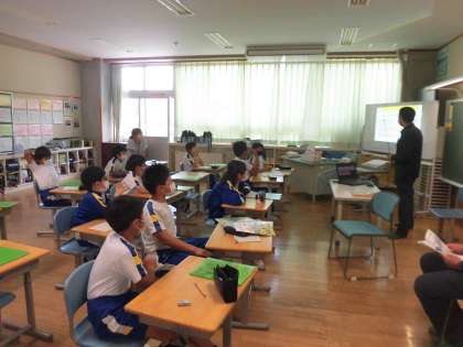 5年生の総合的な学習の時間「誰もが幸せに生きる未来へ やってみよう!自分ができること」では、ささづ苑の介護福祉士さんをゲストティチャートして招き、認知症について教えてもらいました。認知症になったお年寄りに対してどのように接することが大切なのか考えることができました。