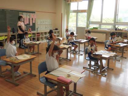 1年生は、国語で物語「おおきなかぶ」の学習をしています。