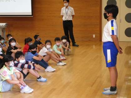長休みに「プール開きの式」を行いました。今年度は、プール学習を行うことができるので、みんな早くプールに入りたいとわくわくしています。
