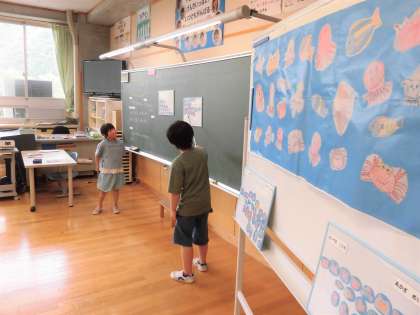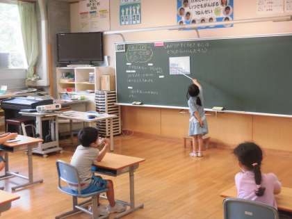 1年生は、ものの数を比べるときにどうすれば分かりやすくなるか考えを発表し合っていました。