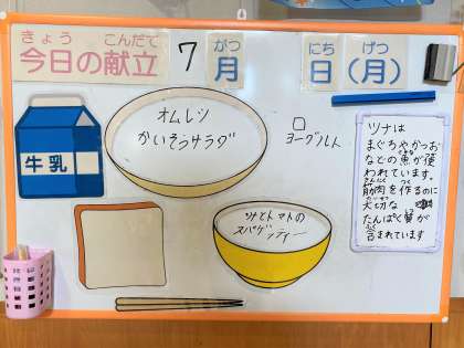 今日の献立には、「ツナとトマトのスパゲッティ」があります。