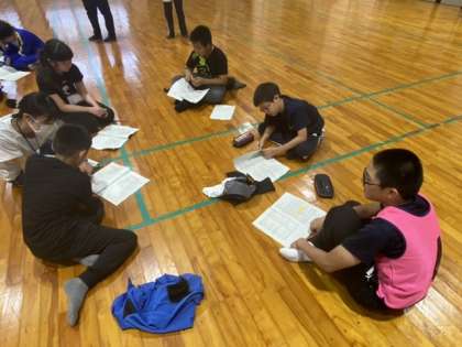 朝の挨拶やラジオ体操をし、班ごとに1日の動きを確認しています。