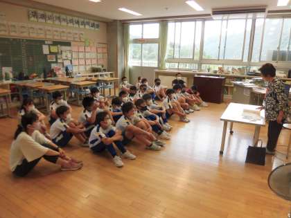 1・2年生は、「うりひめ」3・4年生は「知恵比べに負けた魚屋さん」「寺津の淵のカッパ」5・6年生は「心のマッサージ券」というお話を聞きました。