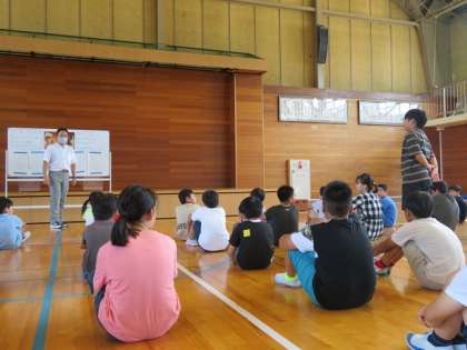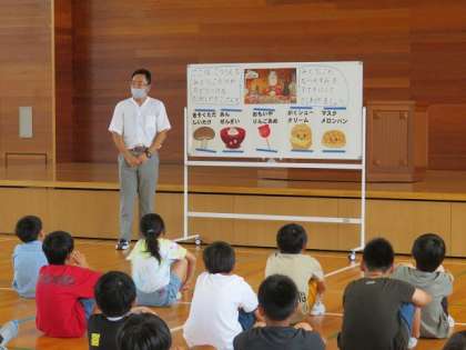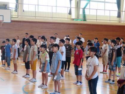 全員で元気よく校歌を歌った後は、夏休みの過ごし方について、生徒指導の先生からお話がありました。