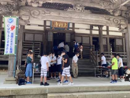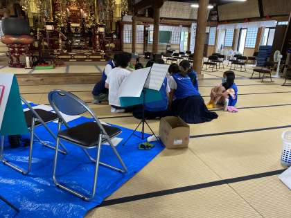 今日は上行寺でユネスコの平和の鐘をならそうのイベントです。神通碧小、楡原中の子供たちがボランティアとして参加します。