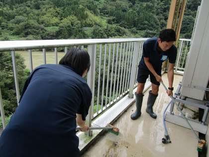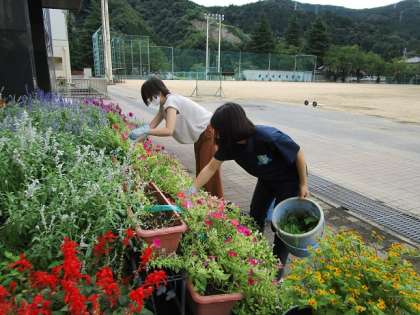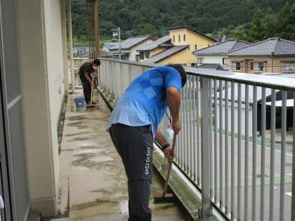今日は、先生たち全員でベランダの清掃をしたり、花壇の除草をしたりしました。